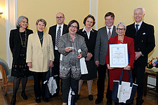 Im Bild u.a. Dr. André Althoff, Mitglied der Jury und Vorsitzender der Deutschen Gesellschaft für Innere Medizin (DGIM), mamazone-Vorstandsvorsitzende und -Gründerin Ursula Goldmann-Posch, Cornelia Luetkens, Gesundheitsamt Wiesbaden, Wiesbadens Bürgermeister Arno Goßmann und Elisabeth Hantke, Projektleiterin mamazone-Mobil sowie Marion und Dr. Bernd Wegener.